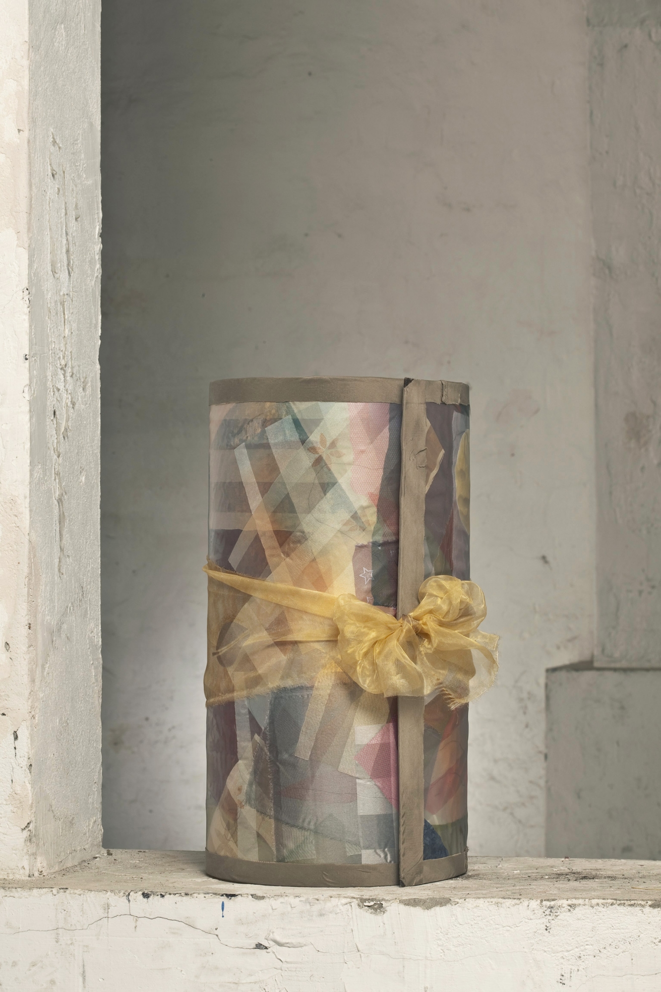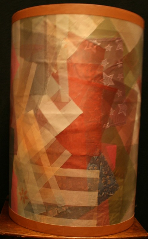 Statt mit Süßigkeiten möchte diese überdimensionale Bonbondose mit Licht gefüllt werden. Sie soll auf einer festen Unterlage stehen, z.B. Tisch oder Boden, da sie nicht nur oben, sondern (zum Naschen durchaus vorteilhaft) auch unten offen ist sowie an einer Stelle senkrecht geschlitzt. Deshalb läßt sie sich, nach Belieben überlappend, ineinander schieben und damit schmählern oder auseinander ziehen bzw. voluminöser machen. Auch mit Kerzen als Lichtquelle sehr schön.